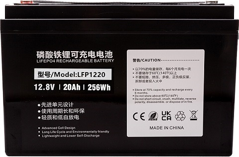 | Battery LiFePO4 12.8V, of capacity 20Ah, 256 Wh. Lithium iron phosphate battery with exceptional durability, energy efficiency and charging speed for a wide range of applications Features: The new generation of lithium iron phosphate batteries offers high energy efficiency (up to 94%) and a wide operating temperature range. They are fast-charging, fully sealed (can be used in any position) and compact in size. As an energy storage system, the LiFePO4 battery is very environmentally friendly and has a wide range of applications. Compared to lead-acid batteries, LiFePO4 outperforms them in terms of durability (lasting up to 25 times longer), weight (twice as light) and high current capacity. This type of battery is non-flammable and non-toxic. LiFePO4 batteries have a very low self-discharge rate of 20% of their capacity in more than 10 years. Battery storage conditions: store up to 70 percent charged and charge every 6 months. Protect from heat. Applications: lighting, power tools, appliances, toys, emergency power supply, etc. Technical specifications: Battery capacity: 20Ah (256Wh). Battery type: LiFePO4 (lithium iron phosphate). Voltage: 12V. Nominal input voltage: 12.8V. Terminals: screws. Operating/storage temperature: up to 60°C. Color: black. Warranty: 24 months. |