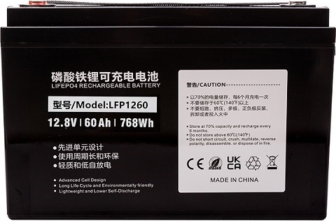 | Battery LiFePO4 12.8V, of capacity 60Ah, 768 Wh. Lithium iron phosphate battery with exceptional durability, energy efficiency and charging speed for a wide range of applications Features: The new generation of lithium iron phosphate batteries offers high energy efficiency (up to 94%) and a wide operating temperature range. They are fast-charging, fully sealed (can be used in any position) and compact in size. As an energy storage system, the LiFePO4 battery is very environmentally friendly and has a wide range of applications. Compared to lead-acid batteries, LiFePO4 outperforms them in terms of durability (lasting up to 25 times longer), weight (twice as light) and high current capacity. This type of battery is non-flammable and non-toxic. LiFePO4 batteries have a very low self-discharge rate of 20% of their capacity in more than 10 years. Battery storage conditions: store up to 70 percent charged and charge every 6 months. Protect from heat. Applications: lighting, power tools, appliances, toys, emergency power supply, etc. Technical specifications: Battery capacity: 60Ah (768Wh). Battery type: LiFePO4 (lithium iron phosphate). Voltage: 12V. Nominal input voltage: 12.8V. Terminals: screws. Operating/storage temperature: up to 60°C. Color: black. Warranty: 24 months. |