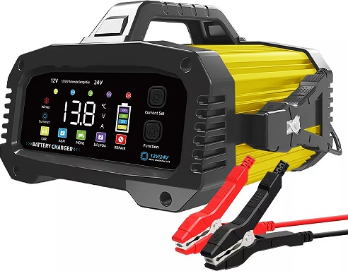 | Fully Automatic Lead Acid/LiFePO4 Battery Charger 12V/25A,24V/15A Automated smart battery charger with an integrated charging management system for 12V - 24V lead-acid and LiFePO4 batteries. Designed for charging and maintaining batteries in cars, motorcycles, scooters, tricycles, and other vehicles. Automatically detects battery condition and selects the appropriate charging mode; features a battery “revitalization” pulse function and an auxiliary start mode for discharged 12V batteries. Features: Suitable for 12V and 24V batteries – can be used in various vehicles and equipment. Supported battery types: Lead-acid (STD, AGM, GEL, EFB), Lithium Iron Phosphate (LiFePO4). Smart automatic charging algorithm with battery condition diagnostics, optimized charging control, temperature compensation, and pulse recovery function. Automatic charging – the device automatically adjusts charging current and voltage level according to battery condition. Pulse Repair mode helps reduce sulfation and restore weakened lead-acid batteries. Low Voltage Start mode for 12V batteries allows engine starting when the battery is almost fully discharged (short-term ~200s mode). Includes clamps for convenient battery connection. Summer/Winter mode: automatically detects ambient temperature and adjusts charging voltage accordingly (works only in car mode). Built-in protections: reverse polarity, overload, short circuit, overcurrent, overheating, incorrect button input, etc., protecting both the charger and the battery. The charger also includes memory function, battery charge level detection, and sensitive control buttons, ensuring comfortable and fast operation. Durable construction: aluminum casing ensures effective cooling and long service life. Convenient portable design with cable and clamp holders. Easy to use: simply connect the battery to the charger and power on. The device automatically detects battery charge level and ambient temperature, then selects the appropriate charging mode. Once fully charged, the charger automatically shuts off the charging system. Wide application: suitable for cars, motorcycles, ATVs, scooters, tricycles, agricultural equipment, and other 12/24V systems. Advantages: easy operation, automatic functionality, efficient charging, and extended battery lifespan. Device Functions: 1.Standard car battery charging mode: Charging current (Imax): 25A (12V mode); 12.5A (24V mode). Charging voltage: 14.4-14.9V (12V mode); 29.2-30V (24V mode). Automatic winter/summer temperature adjustment. Supported batteries: 12-24V lead-acid batteries. Maximum single charging duration: 15-16 hours. 2.AGM battery charging mode: Charging current (Imax): 25A (12V mode); 12.5A (24V mode). Charging voltage: 14.6V (12V mode); 29.2V (24V mode). Supported batteries: 12-24V AGM lead-acid batteries. Maximum single charging duration: 15-16 hours. Float charging is not used. 3.Lithium Iron Phosphate (LiFePO4) battery charging mode: Charging current (Imax): 25A (12V mode); 12.5A (24V mode). Charging voltage: 14.6V (12V mode); 29.2V (24V mode). Supported batteries: 12-24V LiFePO4. Maximum single charging duration: 15-16 hours. Float charging is not used. 4.Lead-acid battery Repair mode: Recovery principle: positive pulse restoration method. Recovery voltage: 14.6V (12V mode); 29.2V (24V mode). Supported batteries: lead-acid type. Maximum repair duration: 15-16 hours. 5.Low Voltage Start mode: Charging current (Imax): 20A (12V mode only). Maximum operating time: ~200 seconds. Charging stops automatically when completed, and the indicator shows “ON”. Technical Specifications: Input voltage: 100-220V AC. Frequency: 50/60Hz. Input current: 1.92A @240V AC. Output voltage: 13.8-29.6V DC. Charging current (Imax): 25A (12V DC) / 15A (24V DC). Supported battery types: STD, AGM, GEL, EFB, LiFePO4. Display: LED. Operating temperature: -10°C ~ +45°C. Dimensions: 216 mm x 192 mm x 125 mm. Weight: ~1.4 kg. Housing material: Aluminum. Color: Yellow, black. Warranty: 24 months. ![]() ![]() ![]() |