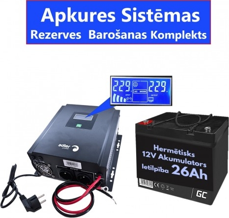 Komplekts Nepārtrauktās barošanas bloks (Invertors ) apkures sistēmai 400 + 12V 26Ah akumulators