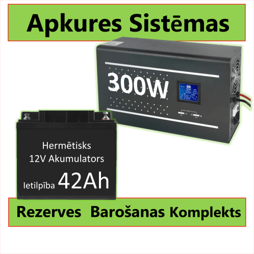 Komplekts: Profesionāls Invertors UPS apkures sistēmai 300W + 12V 42Ah akum.