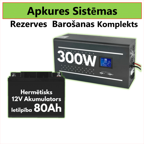 Komplekts: Profesionāls Invertors UPS apkures sistēmai 300W + 12V 80Ah akum.