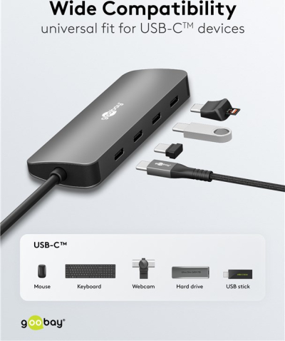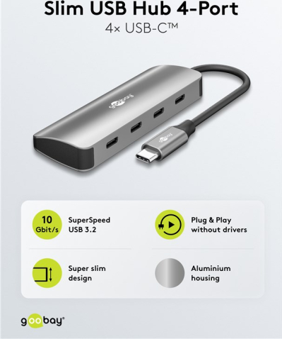 Goobay 76565 Slim 4-Port USB-Hub, USB-C™ auf USB-C™, 10 Gbit/s, Grey Goobay