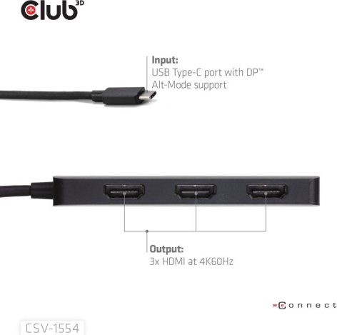 USB Type-C to Triple HDMI™ MST Hub 4K60Hz Manufacturer Website: https://www.club-3d.com/en/detail/2669/usb_type_c_to_triple_hdmit_mst_hub_4k60hz/ | ||||||||||||||||||||||||||||
