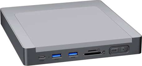 INVZI MagHub 8in1 USB-C docking station / Hub for iMac with SSD bay (Grey)Are you missing inputs on your iMac? With help comes the INVZI 8in1 Hub! This device is equipped with as many as 8 input ports, which are perfect for any situation. What's more, it also has an additional SSD enclosure that can expand your iMac's memory up to 4T! With its modern and thoughtful design, it will also perfectly match your hardware and interior.