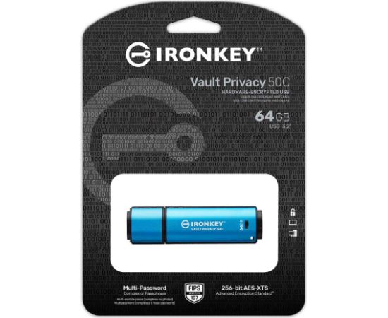 Kingston IronKey™ Vault Privacy 50 series are premium USB drives that provide business-grade security with FIPS 197 certified AES 256-bit hardware-encryption in XTS mode, including safeguards against BadUSB with digitally-signed firmware and against Brute Force password attacks. VP50 series is also TAA compliant. Because it is encrypted storage under the user’s physical control, VP50 series are superior to using the internet and Cloud services to safeguard data. Manufacturer Website: https://www.kingston.com/en/usb-flash-drives/ironkey-vp50-encrypted?speed+class=usb%2B3.2%2Bgen%2B1%2B&capacity=64gb&speed%20class=usb%203.2%20gen%201%20&connector=usb-c | ||||||||||||||||||||||||||||||||||||