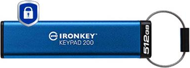 Summary Kingston Technology IronKey 512GB Keypad 200, FIPS 140-3 Lvl 3 (Pending) AES-256 Encrypted. Capacity: 512 GB, Device interface: USB Type-A, USB version: 3.2 Gen 1 (3.1 Gen 1), Read speed: 280 MB/s, Write speed: 200 MB/s. Form factor: Sleeve. Keypad integrated, Password protection. Weight: 25 g. Product colour: Blue