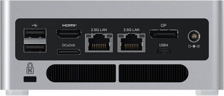 PortsRJ45 2.5 Gigabit Ethernet ×2; USB4 ×1 (rear); USB3.2 Gen2 Type-A ×2; USB2.0 Type-A ×2; HDMI2.0 ×1; DP1.4 ×1; OCulink ×1; DMIC ×1; 3.5mm Combo Jack ×1