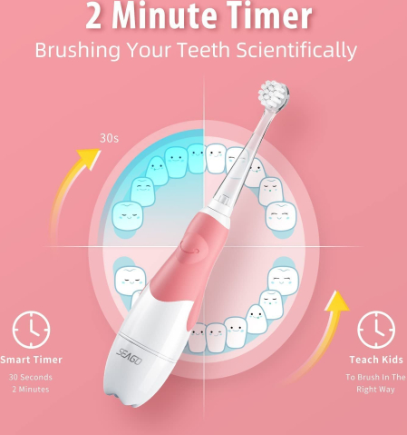 Szczoteczka Seago Szczoteczka soniczna dla dzieci SEAGO, kolor różowy, 1xAAA 1,5V (brak w zestawie), 4 końcówki, SG-513 Pink