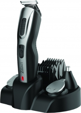 | Набор для ухода за лицом и телом 5-в-1 Zilan ZLN 3857 с аккумулятором и зарядной подставкой. В комплект входят 5 сменных насадок, 5 фиксированных гребней разной длины (1.5, 3, 6, 9 и 12 мм), зарядное устройство 3V, подставка для зарядки, опорная база, смазочное масло и щётка для чистки. |