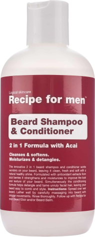 Recipe For Men, Beard Shampoo & Conditioner, Cleansing and Conditioning, Beard Shampoo, Moisture, 250 ml