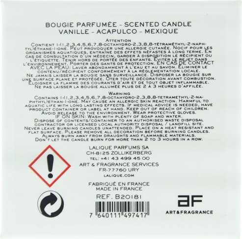 Lalique, Vanille Acapulco Mexique, Vanilla, Scented Candle, 190 g Unisex