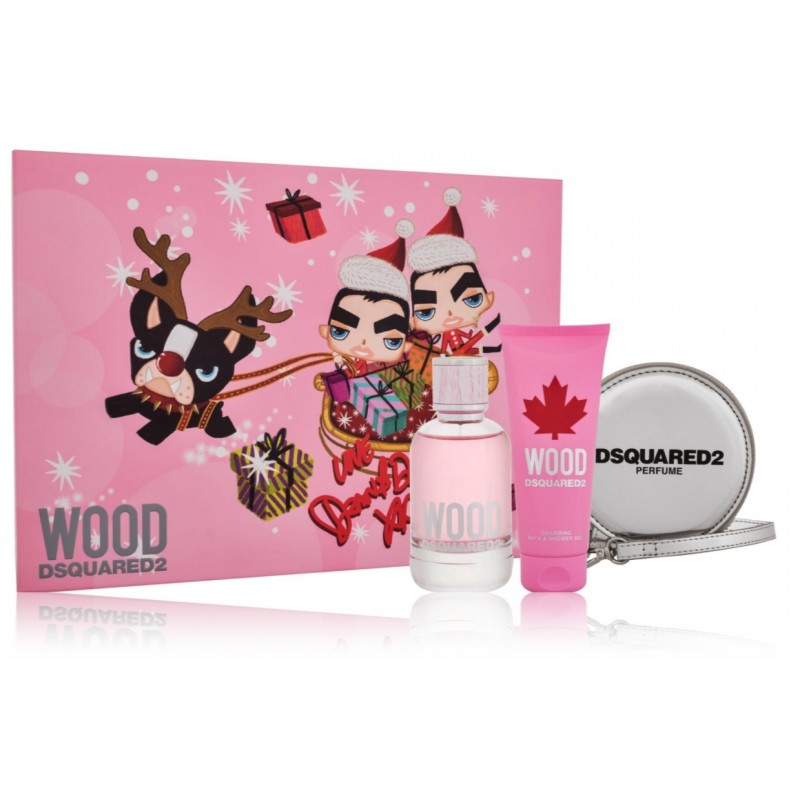 Dsquared2 Wood for Her komplekts sievietēm (100 ml. EDT + 100 ml. dušas želeja + somiņa)