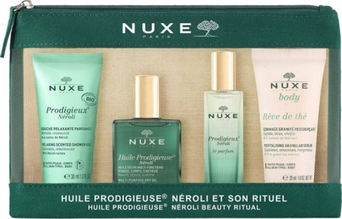 Nuxe Travel Set Nuxe: Prodigieux Neroli, Shower Gel, All Over The Body, For All Skin Types, 30 ml + Prodigieux Neroli, Eau De Parfum, For Women, 15 ml *Miniature + Reve de The, Vegan, Revitalising, Body Scrub, 30 ml + Huile Prodigieuse Multi-Purpose Nero