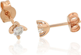 Золотые серьги-пуссеты #1200343(Au-R)_DI, Красное Золото 585°, Бриллианты (0,25Ct), 0.93 гр.