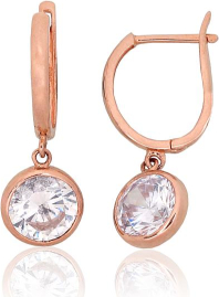 Золотые серьги на английском замке #1200432(Au-R)_CZ, Красное Золото 585°, Цирконы, 2.4 гр.