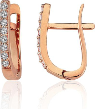 Золотые серьги на английском замке #1201787(Au-R)_CZ, Красное Золото 585°, Цирконы, 1.96 гр.