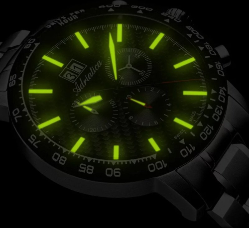 Ciferblatas Tamsoje švytinčios valandų padalos, Tamsoje švytinčios rodyklės, Rodyklinis, Metalinės valandų padalos