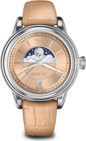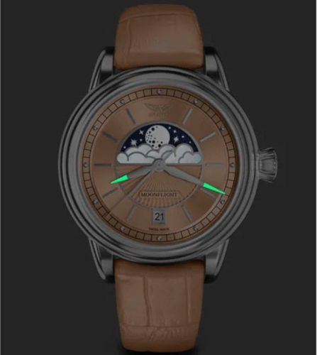 Ciferblatas Mėnulio fazės indikatorius, Rodyklinis, Metalinės valandų padalos, Tamsoje švytinčios rodyklės