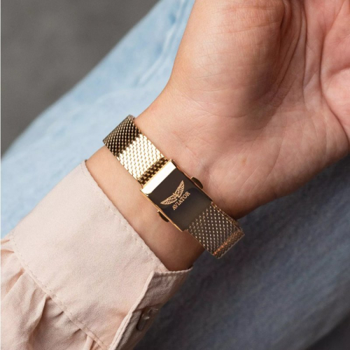 Apyrankės užsegimas Z formos plieninis (atsisegus užsegtuką, laikrodis pasilieka ant rankos), Su gamintojo logotipu