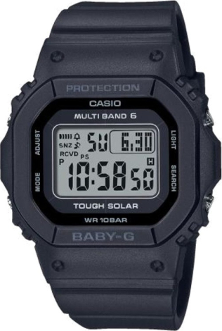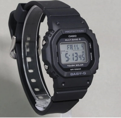 Ypatybės Laikmatis, 24 val. laiko rodymo indikatorius, Kontroliuojamas radio bangomis, Baterijos lygio rodymas, Atgalinis laikmatis, Pasaulio laikas, Apšvietimas, Laikrodžio dirželis: plastikinis - silikoninis, 5 žadintuvai