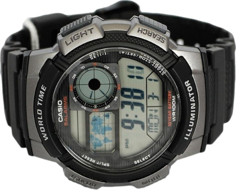 Ypatybės Laikmatis, 5 žadintuvai, Atgalinis laikmatis, 24 val. laiko rodymo indikatorius, Pasaulio laikas, Ličio baterija, kurios ilgaamžiškumas 10 metų, LED-apšvietimas