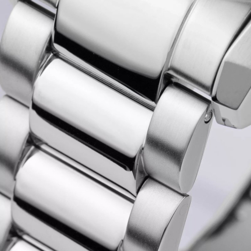 Apyrankės užsegimas Z formos su fiksatoriais (atsisegus užsegtuką, laikrodis pasilieka ant rankos), Su gamintojo logotipu, Plieninis