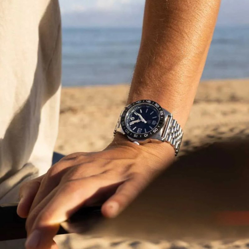 Apyrankės užsegimas Z formos su fiksatoriais (atsisegus užsegtuką, laikrodis pasilieka ant rankos), Su gamintojo logotipu, Plieninis