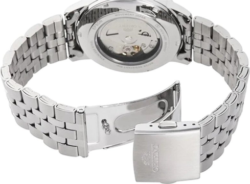 Apyrankės užsegimas Su gamintojo logotipu, Z formos su fiksatoriais (atsisegus užsegtuką, laikrodis pasilieka ant rankos), Plieninis