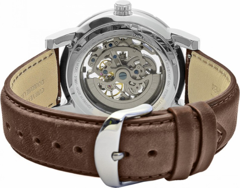 Korpuso ypatybės Per dangtelį matosi laikrodžio mechanizmas, Nerūdijančio plieno dangtelis, Dangtelis užsukamas ant sriegio