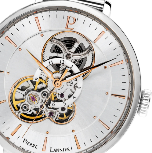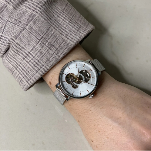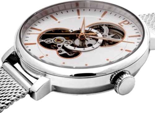Ciferblatas Metalinės valandų padalos, Tamsoje švytinčios rodyklės, Rodyklinis, Per ciferblatą matosi laikrodžio mechanizmas