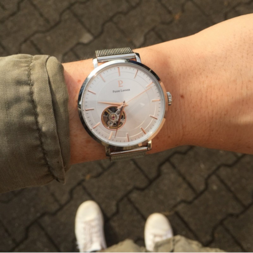 Ciferblatas Rodyklinis, Per ciferblatą matosi laikrodžio mechanizmas, Metalinės valandų padalos