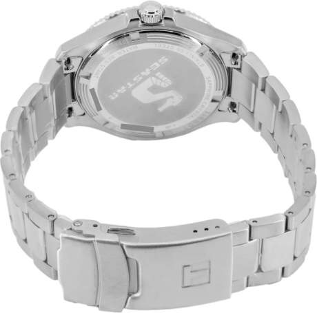 Apyrankės užsegimas Z formos su fiksatoriais (atsisegus užsegtuką, laikrodis pasilieka ant rankos), Su gamintojo logotipu, Plieninis