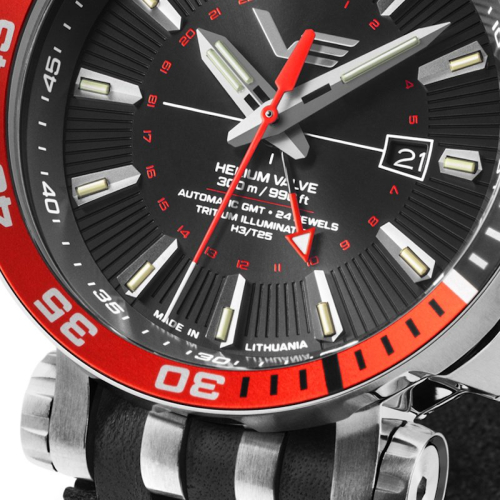 Ciferblatas GMT indikatorius, Tamsoje švytinčios valandų padalos, Tamsoje švytinčios rodyklės, Rodyklinis, Metalinės valandų padalos