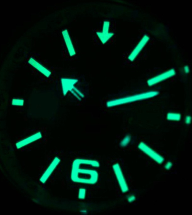 Ciferblatas Tamsoje švytinčios valandų padalos, Tamsoje švytinčios rodyklės, Sekundinė rodyklė - atskirame ciferblate, Rodyklinis