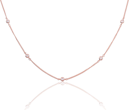 Серебряное колье #2500136(PAu-R)_CZ, Серебро 925°, красное золото (покрытие), Цирконы, длина: 42 см, 2.7 гр.