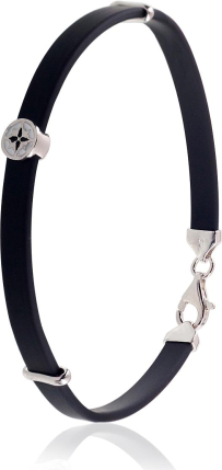 Серебряный браслет #2600377(PRh-Gr)_ML-W+ML-BK, Серебро 925°, родий (покрытие), Ювелирная эмаль, длина: 21 см, 4.8 гр.