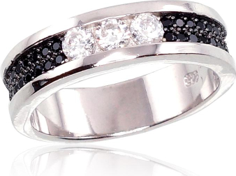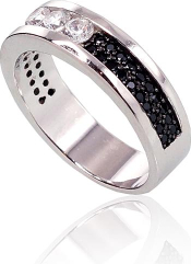 Серебряное кольцо #2100973(PRh-Gr+PRh-Bk)_CZ+CZ-BK, Серебро 925°, родий (покрытие), Цирконы, Размер: 19, 4.5 гр.
