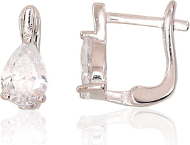 Серебряные серьги на английском замке #2202948(PRh-Gr)_CZ, Серебро 925°, родий (покрытие), Цирконы, 1.8 гр.
