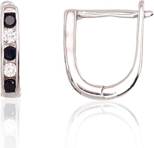 Серебряные серьги на английском замке #2202950(PRh-Gr)_CZ+CZ-BK, Серебро 925°, родий (покрытие), Цирконы, 1.1 гр.