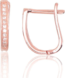 Серебряные серьги на английском замке #2202951(PAu-R)_CZ, Серебро 925°, красное золото (покрытие), Цирконы, 1.5 гр.