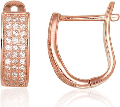 Серебряные серьги на английском замке #2203108(PAu-R)_CZ, Серебро 925°, красное золото (покрытие), Цирконы, 2.8 гр.