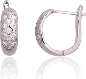 Серебряные серьги на английском замке #2203759(PRh-Gr)_CZ, Серебро 925°, родий (покрытие), Цирконы, 3.7 гр.