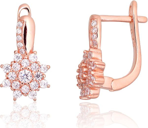 Серебряные серьги на английском замке #2203766(PAu-R)_CZ, Серебро 925°, красное золото (покрытие), Цирконы, 2.9 гр.