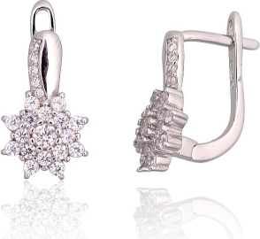 Серебряные серьги на английском замке #2203766(PRh-Gr)_CZ, Серебро 925°, родий (покрытие), Цирконы, 3.1 гр.