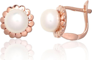 Серебряные серьги на английском замке #2203840(PAu-R)_PE, Серебро 925°, красное золото (покрытие), Жемчуг, 2.5 гр.
