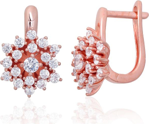 Серебряные серьги на английском замке #2203849(PAu-R)_CZ, Серебро 925°, красное золото (покрытие), Цирконы, 5.9 гр.