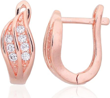 Серебряные серьги на английском замке #2203850(PAu-R)_CZ, Серебро 925°, красное золото (покрытие), Цирконы, 2.7 гр.