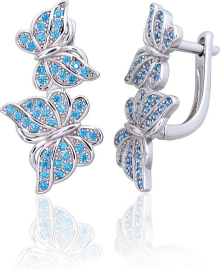Серебряные серьги на английском замке #2203851(PRh-Gr)_CZ-AQ, Серебро 925°, родий (покрытие), Цирконы, 4.2 гр.