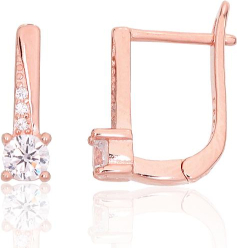 Серебряные серьги на английском замке #2204103(PAu-R)_CZ, Серебро 925°, красное золото (покрытие), Цирконы, 1.8 гр.
